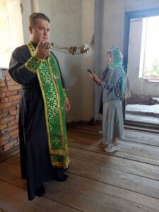 11 апреля 2024 года. Сегодня у в 13.30 о. Артемий Фоминых совершил молебен на начало доброго дела в храме во имя Живоначальной Троицы. Восстановительные работы в храме еще не закончены, необходимо построить колокольню, оштукатурить фасад, закончить выкладывать плиткой плинтус в центральном приделе, а также укладывать плитку на иконостасе. Требует восстановления и центральное крыльцо. Прихожане помолились чтобы с Божией помощью эти работы были бы выполнены в ближайшее время.